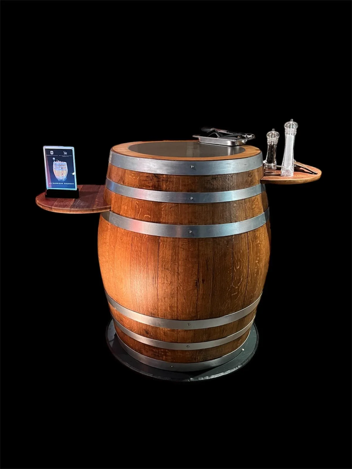 Der handliche Allrounder Einfache, präzise Temperatursteuerung, 10-stufig – unter der Massivholzplatte befestigtVerschiedene Hitzezonen im Bereich von 50 – 250° C, die parallel bedient werden können – z.B. gleichzeitig scharf anbraten und daneben warmhalten.Die Grillplatte wölbt sich während des Betriebs nach unten – perfekt um Soßen zu kreieren.Für den Outdoor- und Indoor-Bereich geeignet – bei Bedarf mit Abzug erhältlich Mobiles Aufstellen durch elektrischen Betrieb mit 2500W / 230 V / 8 A.Fass ist für Langlebigkeit aufwendig von innen stabilisiert